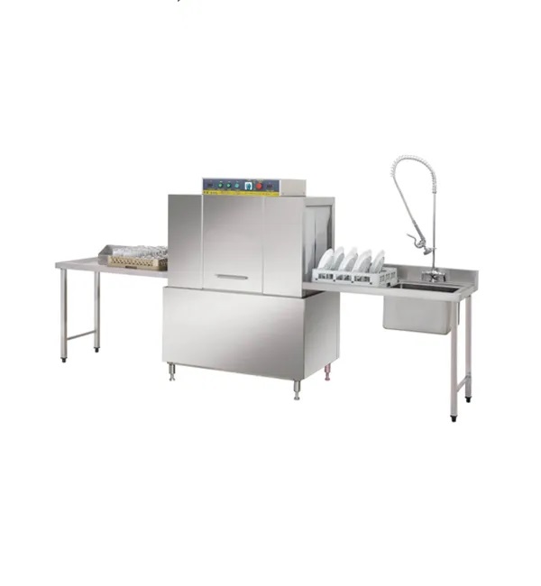 Dishwashing equipment comprises machines and tools used in commercial kitchens to efficiently clean and sanitize dishes, utensils, and cookware. Key types include dishwashers, glass washers, pot and pan washers, and sinks with spray nozzles. These devices are designed to handle high volumes of dirty dishes quickly and effectively, often featuring multiple wash cycles, high-temperature sanitation, and energy-saving modes. Proper dishwashing equipment ensures hygiene standards are met, reduces manual labor, and increases the overall efficiency of kitchen operations, helping maintain a clean and safe food preparation environment.